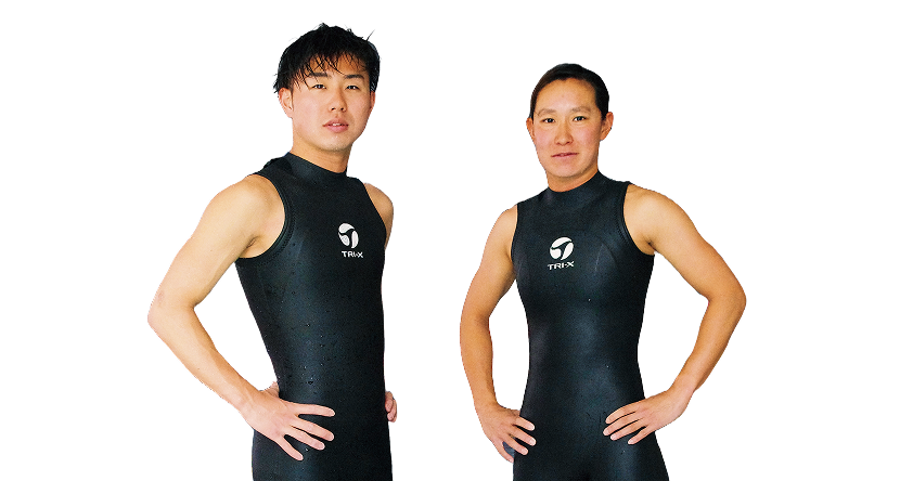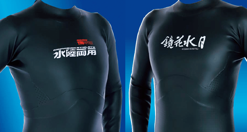 みぞおちより上は、薄く伸びやすい生地にするなど、部位別設計により、抵抗を低減しつつ体の自然な動きをサポート。裾を斜めにカットすることで着脱もスムーズ。 水陸両用は、初心者にもおすすめのハイコストパフォーマンスモデル。鏡花水月は、胴部分に高浮力ラバーを使用し、さらに表面抵抗値の低減を実現!