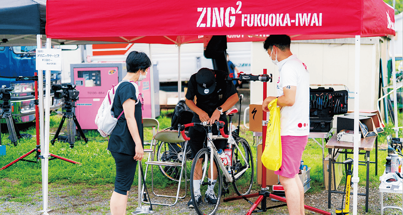 大会当日のバイクのメンテナンスを行ってくれるのは、日本ではまだ珍しいトライアスロンのプロショップなので困ったことがあったら相談を。